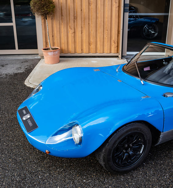 La voiture repose sur un châssis tubulaire sophistiqué, renforcé par une poutre centrale, offrant une rigidité exceptionnelle pour une construction artisanale. Le moteur Ford Cortina-Lotus 1600 cm³, installé en position centrale arrière, est alimenté par deux carburateurs double-corps et développe environ 120 chevaux, et peut aller jusqu’à 180 chevaux selon son niveau de préparation. Le train arrière, directement issu des prototypes Matra, les jantes de Formule 2 Matra, la boîte de vitesses Renault et de nombreux éléments en magnésium témoignent d’un niveau de conception et de finition très au-dessus des standards habituels de l’époque pour une voiture construite à l’unité.